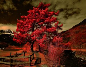 Tutorial courtesy of Dean Frate To start working on an infrared image, open the camera raw image in a format that can handle manipulation without introducing artifacts. Here, I’ll use Adobe RGB 16b color space (wiki). For some applications, I prefer to useProPhoto RGB color space (wiki), but in this case it gives unwanted color shifts toward green. The reason to start in a RGB is to accomplish the standard channel swaps, and even the